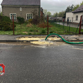 Nasze działania polegały na wypompowaniu wody z piwnicy budynku sąsiadującego z miejscem awarii oraz zabezpieczeniu miejsca zdarzenia.